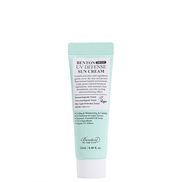 Bei der Benton Air Fit UV Defense Sun Cream handelt es sich um einen leichten und nicht weißelnden chemischen Sonnenschutz, der die Haut sorgfältig vor gefährlicher Sonneneinstrahlung schützt. Die modernen Filter erreichen SPF50+ /PA++++ und sind zuverlässig in der Wirksamkeit und in der Zuverlässigkeit. Dieser Sonnenschutz ist mit Centella Asiatica und anderen grünen Inhaltsstoffen angereichert, um die Haut zu pflegen und zu beruhigen. Gerade für Menschen mit unreiner Haut kann dieser Sonnenschutz den ersehnten Schutz ohne Nachteile bringen. Beim Auftragen entsteht kein weißer Schleier und auch keine Klebrigkeit. Der Geruch ist ebenfalls angenehm durch natürliche Duftstoffe wie Rosmarinblattöl.