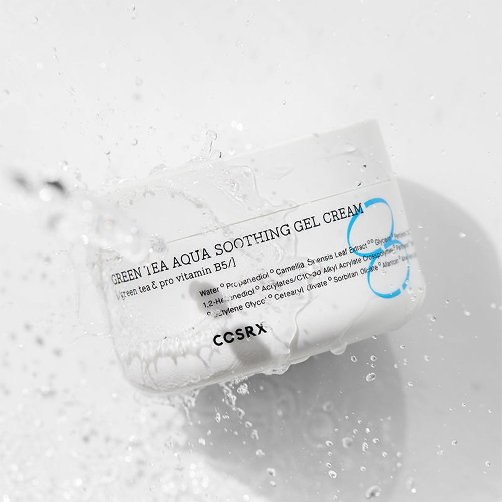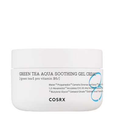 Die COSRX Hydrium Green Tea Aqua Soothing Gel Cream ist eine gelartige, kühlende und nicht fettende Gelfeuchtigkeits-Creme, die die Haut intensiv mit Feuchtigkeit versorgt. Der Hauptinhaltsstoff der Hydrium-Line ist Vitamin B5, auch als Panthenol bekannt, mit einer feuchtigkeitsbindenden, entzündungshemmenden und wundheilenden Wirkung, es stärkt die Hautbarriere, verbessert die Fähigkeit der körpereigenen Hornschicht zur Wasserbindung und somit die Elastizität der Haut. Die in der COSRX Hydrium Green Tea Aqua Soothing Gel Cream enthaltene Extrakte des Grünteeblatts (Camellia Sinensi Leaf Extract) und Aloe Vera (Aloe Ferox Leaf Extract) bewahren die Haut vor der schädlichen Wirkung von freien Radikalen, spenden intensiv Feuchtigkeit, wirken entzündungshemmend, verschaffen kühlende Linderung bei Hautirritationen, wie Sonnenbrand, wirken Hautunreinheiten entgegen und regen die Durchblutung an. Die geleeartige Textur dieser kühlenden und leichten Creme ist perfekt bei heißem und feuchtem Klima und ideal bei fettiger Haut, da sie schnell einzieht und sofort Feuchtigkeit spendet.