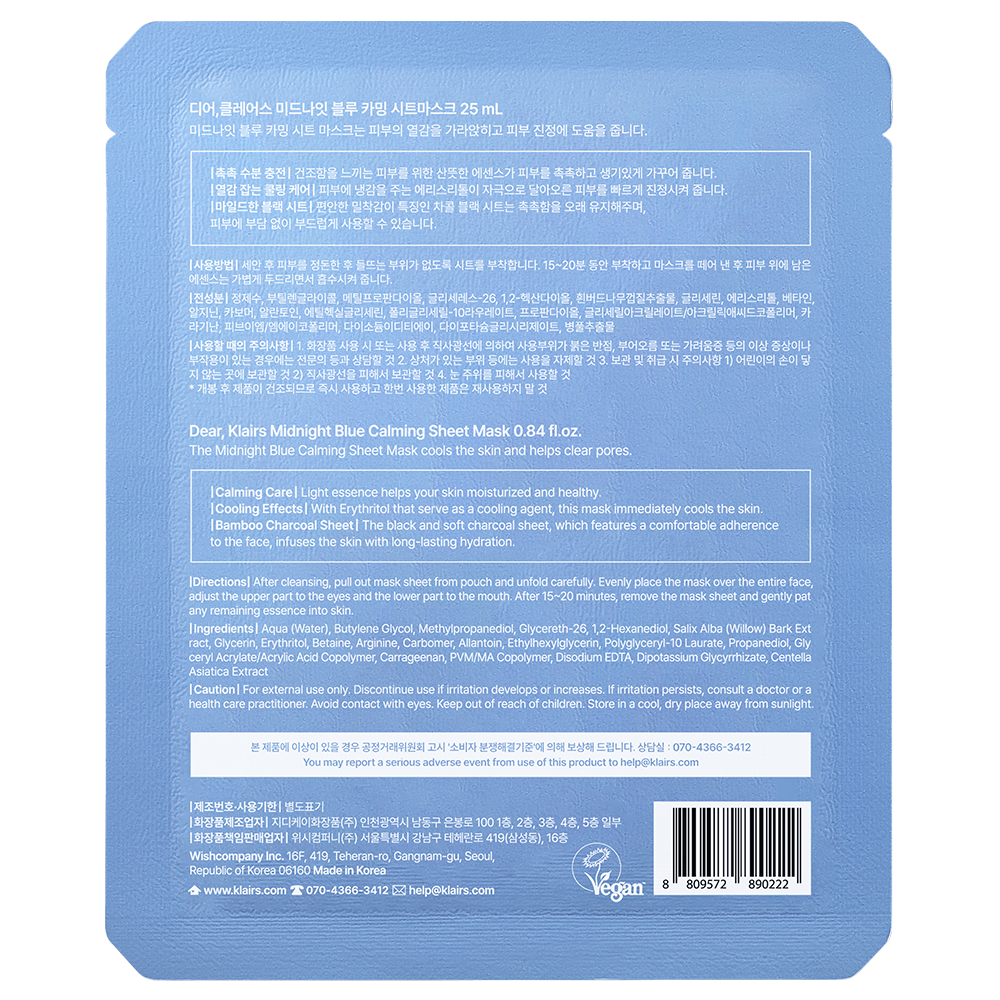Die Klairs Midnight Blue Calming Sheet Maske wurde speziell entwickelt, um die Haut zu beruhigen. Neben dem Bestseller Klairs Midnight Blue Calming Cream hat Klairs nun speziell diese Maske mit Centella Asiciatica und Guaiazulene entwickelt, um die gerötete und irritierte Haut sofort und nachhaltig zu beruhigen.