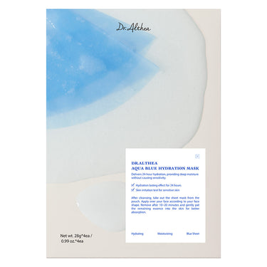 Die Aqua Blue Hydration Mask von Dr. Althea ist eine feuchtigkeitsspendende Tuchmaske mit Niacinamid, pflanzlichen und marinen Extrakten, die deine Haut intensiv durchfeuchtet, ausgleicht und ihr ein frisches, ebenmäßiges Hautbild verleiht.