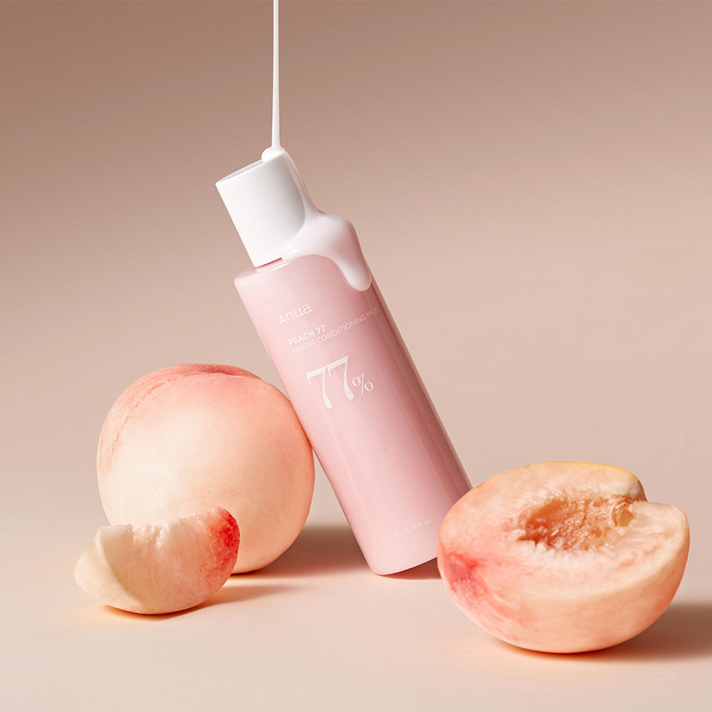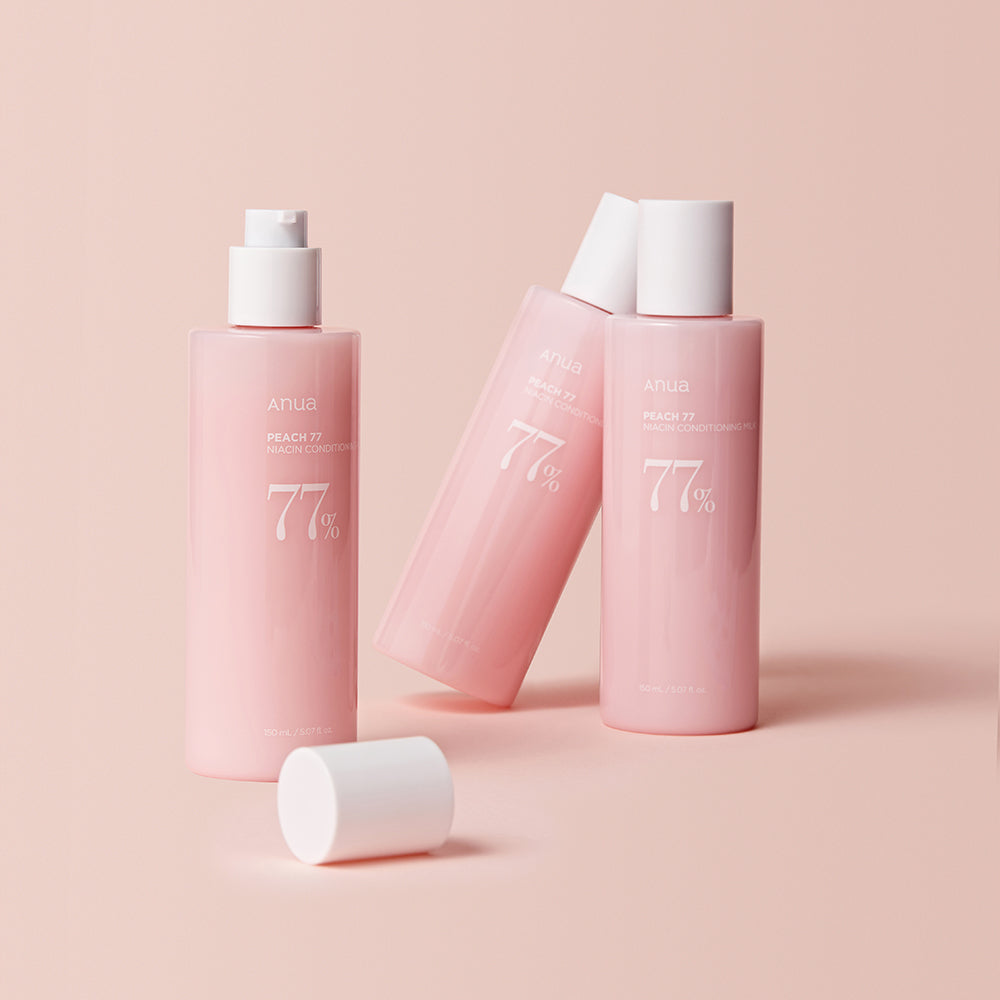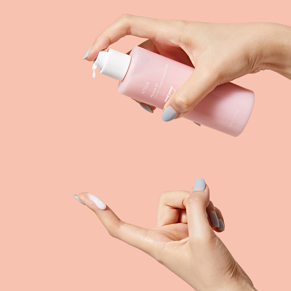 Die Anua Peach 77% Niacin Conditioning Milk ist eine pflegende Gesichtsmilch mit Pfirsichextrakt und Panthenol, die Feuchtigkeit spendet, die Hautbarriere stärkt und und einen ebenmäßigen, strahlenden Teint verleiht.