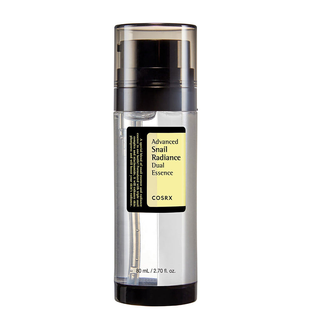 Die COSRX Advanced Snail Radiance Dual Essence ist eine innovative 2-in-1 Essenz, die Elastizität und Strahlkraft in einem einzigen Pumpstoß vereint – eine hochwirksame Pflege mit aufhellenden, aufpolsternden und feuchtigkeitsspendenden Eigenschaften, ideal für müde, trockene oder empfindliche Haut.