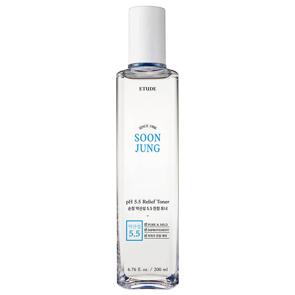 Der ETUDE Soon Jung pH 5.5 Relief Toner ist ein hypoallergener Toner, der speziell entwickelt wurde den natürlichen pH-Wert der Haut von 5,5 zu erhalten, die Hautbarriere zu stärken und empfindlicher Haut beruhigende Feuchtigkeit zu spenden.