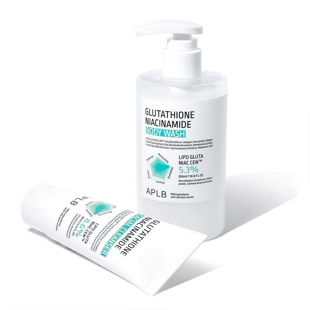 Das APLB Glutathione Niacinamide Body Wash ist ein hypoallergenes Duschgel mit milden Inhaltsstoffen für empfindliche Haut.