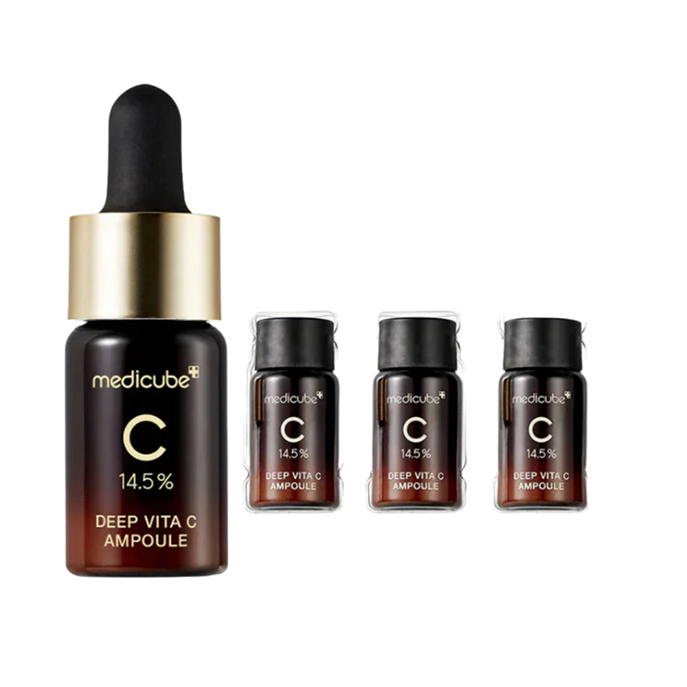 Die Medicube Deep Vita C Ampoule ist eine hochwirksame, wasserbasierte Pflegeampulle mit 14,5 % reinem Vitamin C (Ascorbinsäure), die gezielt Pigmentflecken, Sommersprossen und Hautunreinheiten im Hautton reduziert. Sie unterstützt ein ebenmäßiges, strahlendes Hautbild, indem sie die Melaninproduktion hemmt und die Hautelastizität fördert. Bereits nach sieben Tagen können sichtbare Verbesserungen in Ausstrahlung und Ebenmäßigkeit festgestellt werden.