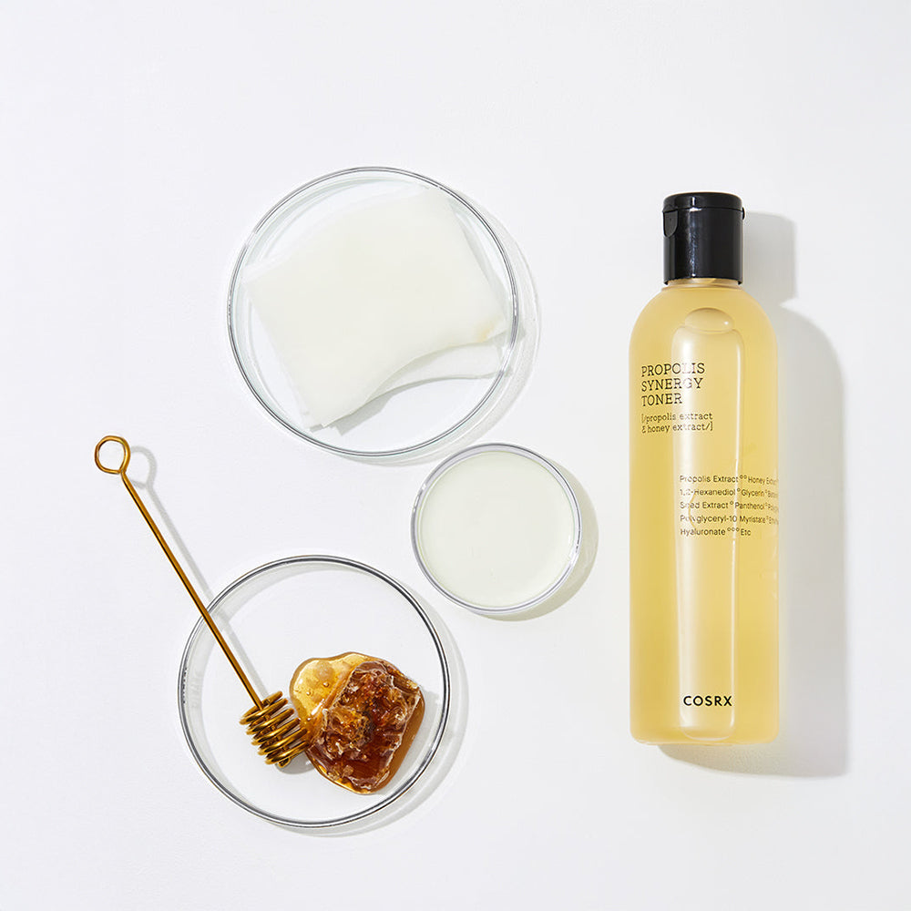 Cosrx Propolis Synergy Toner ist eine hochwirksame Powerpflege mit 72,6% Schwarzbienen-Propolis-Extrakt und 10% Honig-Extrakt, die deine Haut zum Strahlen bringt.