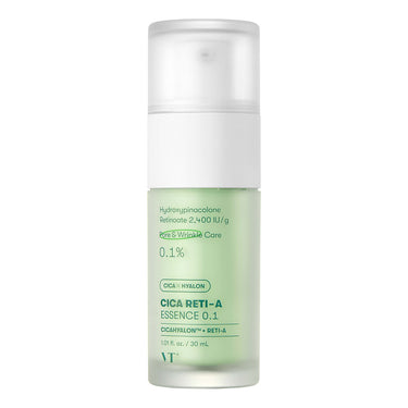 Die VT Cosmetics Cica-Reti-A Essence 0.1 ist eine hochkonzentrierte Gesichtsessenz, die mit 0,1 % Hydroxypinacolon-Retinoat (HPR) entwickelt wurde, um die Hautstruktur sichtbar zu verbessern und Anzeichen von Hautalterung zu mindern. Durch die stabile und wirksame Form des Retinoids wird die Zellregeneration unterstützt, die Kollagenproduktion angeregt und das Hautbild geglättet. Die leichte Textur zieht schnell ein und macht die Essenz zu einem idealen Schritt in deiner abendlichen Pflegeroutine.