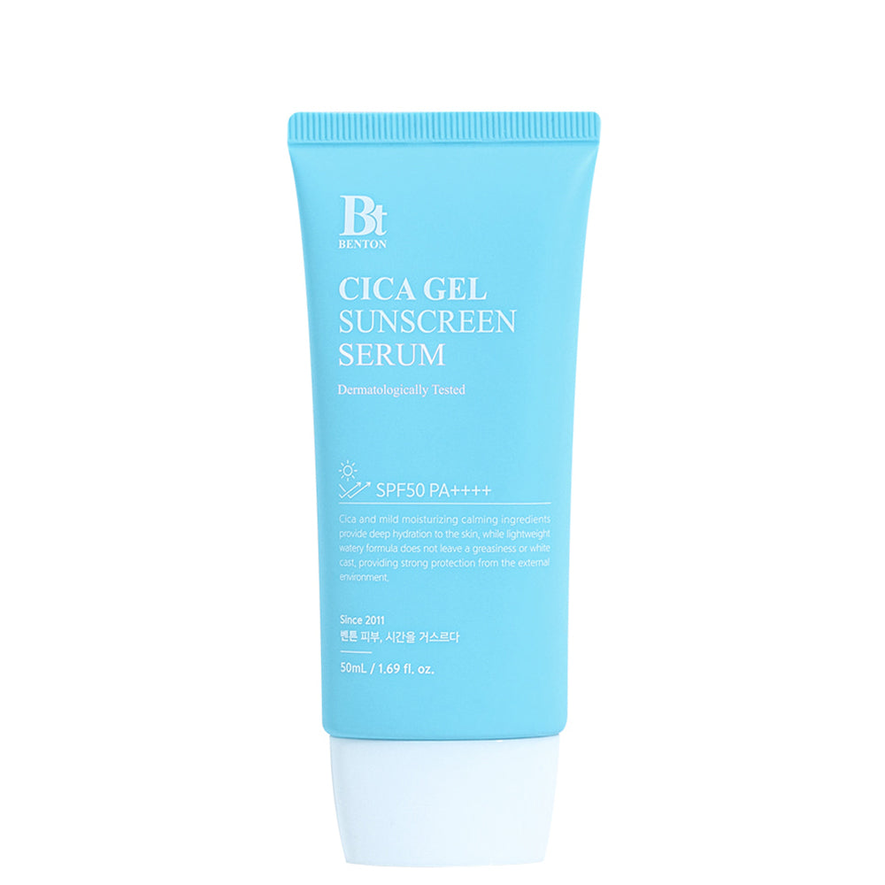 Das Cica Gel Sunscreen Serum von Benton ist eine Sonnenserum-Innovation: es ist mild zur Haut, stark feuchtigkeitsspendend, nicht reizend und ohne weißen Film auf der Haut. Es bietet dir einen starken SPF50 und PA++++-Schutz und zusätzlich hat es einen glättenden Effekt auf deine Haut durch CICA Inhaltsstoffe. Wir sind begeistert! Das Produkt wurde umfangreich auf Schutz vor UV Strahlen, SPF/PA, auf Hautverträglichkeit und Augenirritationen getestet. 79 % der gesamten Inhaltsstoffe des Feuchtigkeitsserums versorgen die Haut sofort mit Feuchtigkeit. Das Benton Cica Gel Sunscreen Serum kannst du das ganze Jahr über als Feuchtigkeits- und Sonnencreme verwenden. Es hat eine leichte Konsistenz, lässt sich beispielsweise leicht abwaschen, ohne fettige Rückstände zu hinterlassen. Stattdessen bietet es ein schönes, gesundes Hautschimmern einer gesund, durchfeuchteten Haut.