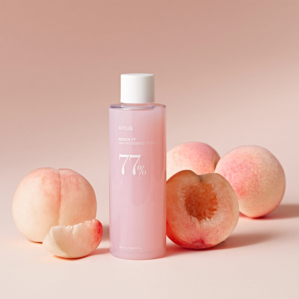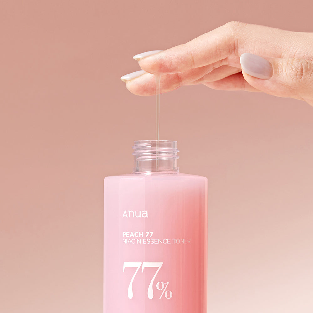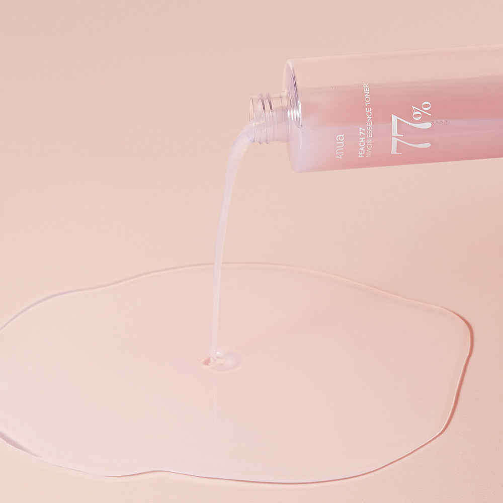 Der Anua Peach 77% Niacin Essence Toner ist ein feuchtigkeitsspendender Toner mit Pfirsichextrakt und Ceramiden, um die Haut aufzuhellen, sie zu hydratisieren und ihr einen ebenmäßigen, strahlenden Teint zu verleihen.