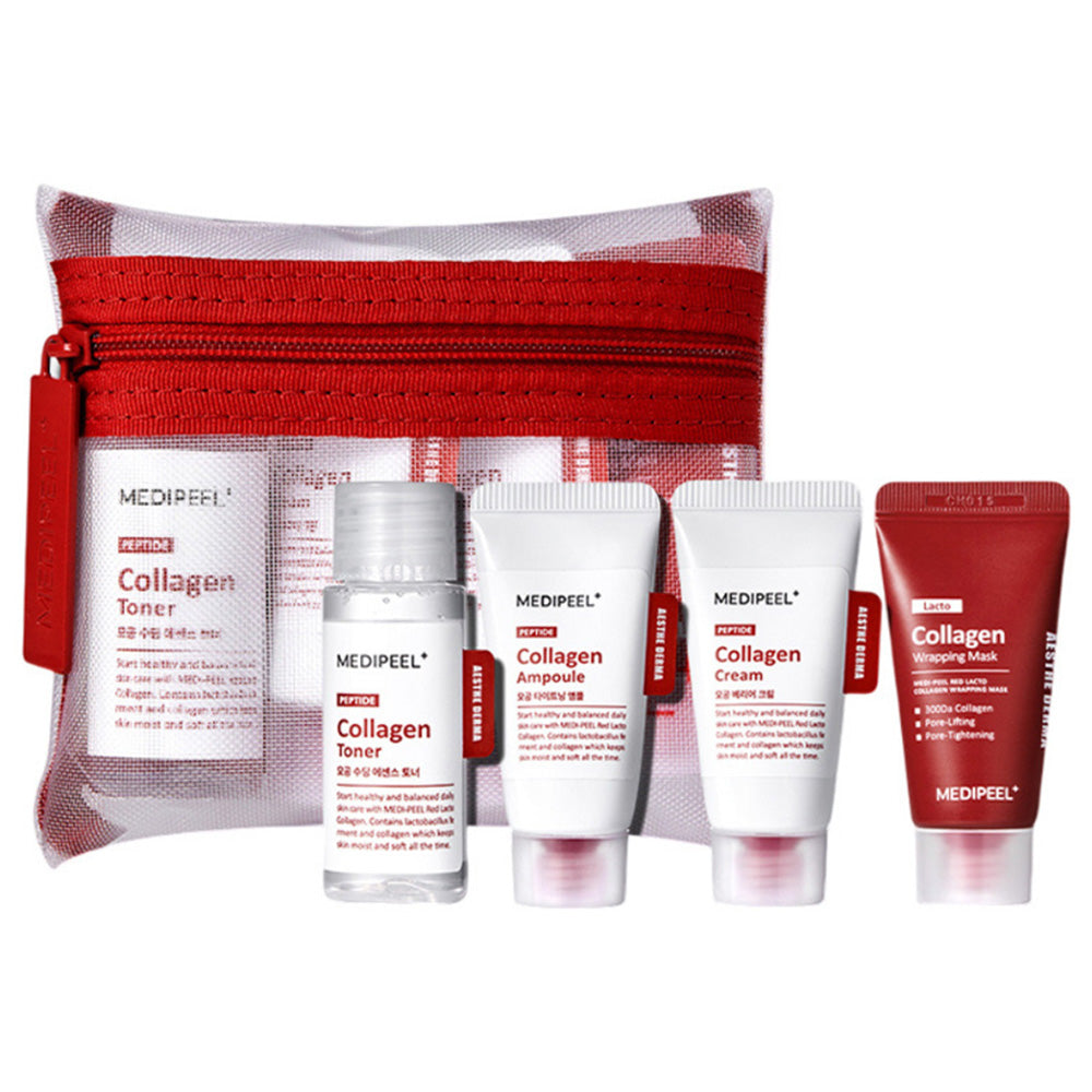 Das Medi-Peel Red Lacto Collagen Skin Care Trial Kit ist ein komplettes Pflegeset, das deine Haut intensiv mit Feuchtigkeit versorgt, ihre Elastizität verbessert und für ein sichtbar glatteres, strahlenderes Hautbild sorgt. Mit vier perfekt aufeinander abgestimmten Produkten – Toner, Ampulle, Creme und Maske – bietet dieses Set eine umfassende Pflegeroutine, die die Hautbarriere stärkt und ihr ein frisches, gesundes Aussehen verleiht.