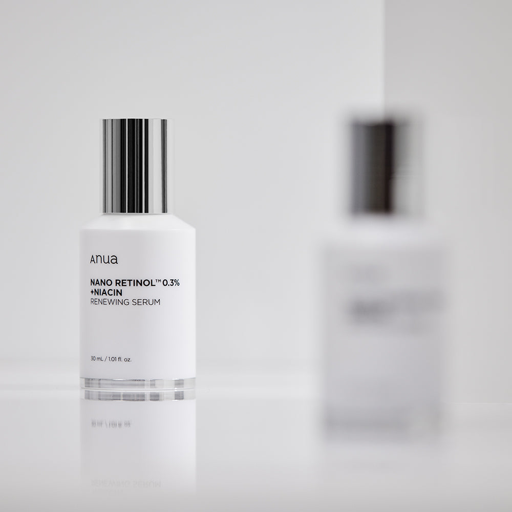 Das Anua Retinol 0.3% + Niacin Renewing Serum ist ein Anti-Aging-Serum, das Nano-Retinol und Niacinamid kombiniert, um Hyperpigmentierung, Elastizität, Porenbild und die Hauttextur zu verbessern.
