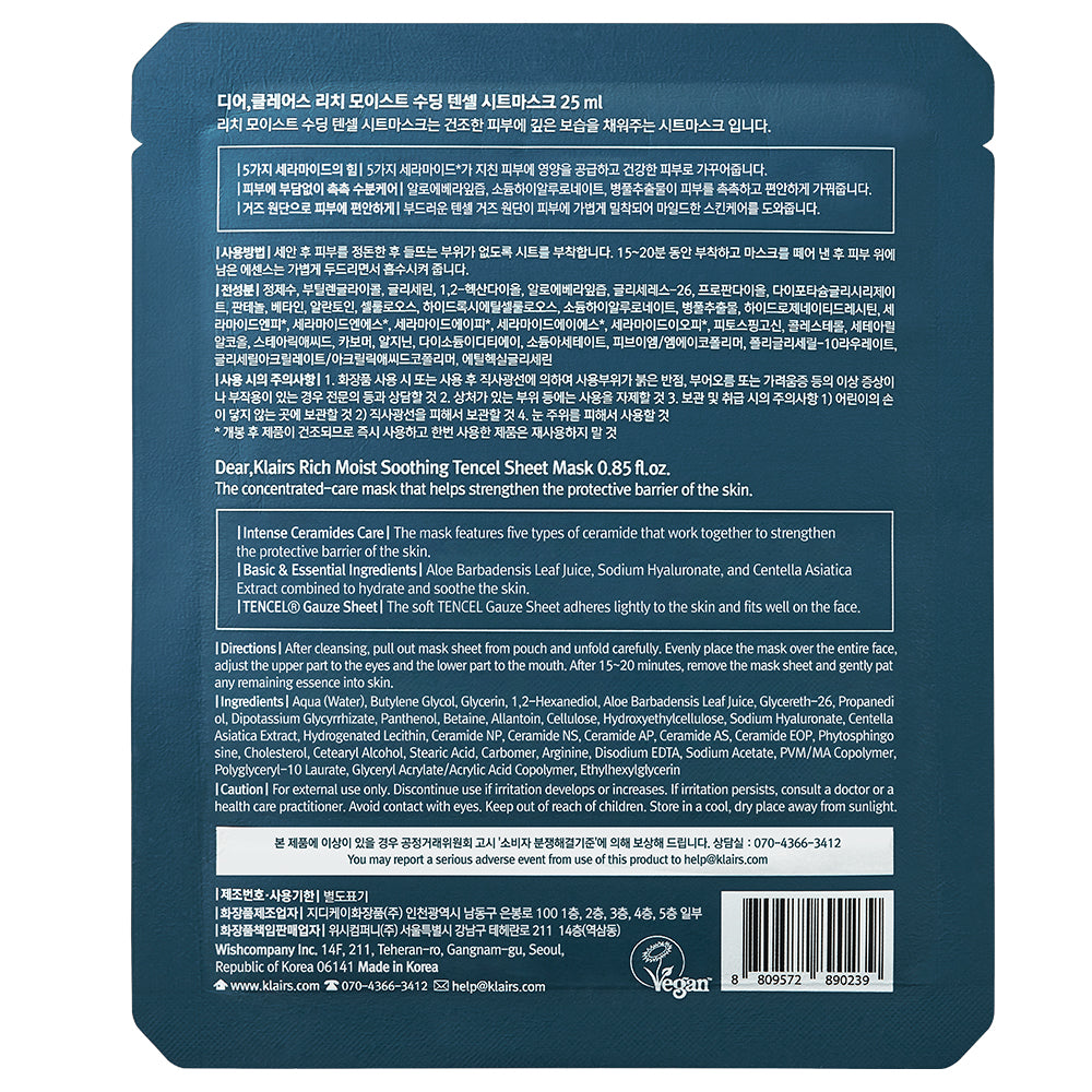 Erlebe die Klairs Rich Moist Soothing Tencel Sheet Mask! Enthaltenes Aloe Vera und Panthenol spendet der Haut optimale Feuchtigkeit, lässt sie seidenweich werden und mindert Trockenheitsfältchen.