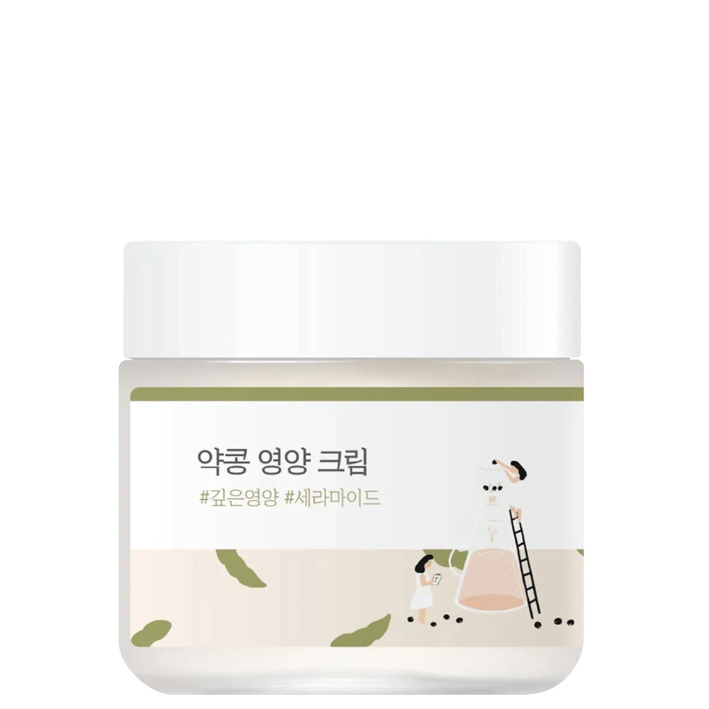 Die Round Lab Soybean Nourishing Cream ist schwarze Sojabohnen-Extrakt ist angereichert mit Nährstoffen, Ceramiden und Adenosin für eine intensive Feuchtigkeitsversorgung. Die leichte Textur zieht schnell ein und hinterlässt weder ein fettiges noch klebriges Hautgefühl.
